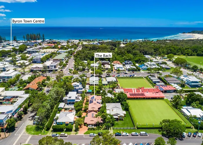 Вілла The Bach In Byron розташовані у житловому районі міста і пропонують гостям веранду для засмаги і поле для гольфа.